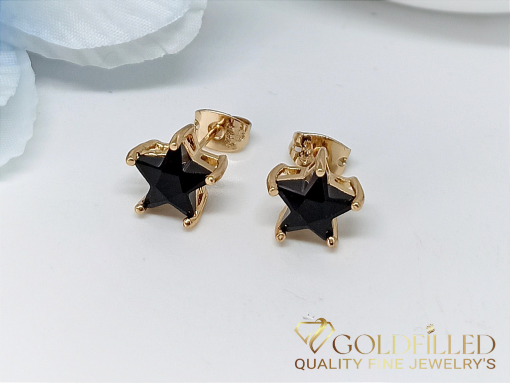 Goldfilled Antialergijske Uhani na vijak z črnim kamnom 9mm 18K barva