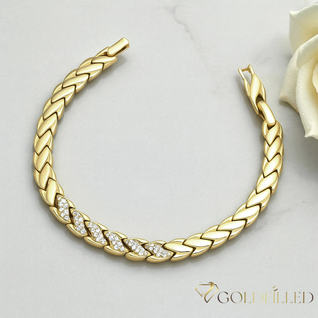 Antiallergene pozlačen zapestnica „Goldfilled“, dolžina 19cm in širina 7 mm, barva 14K